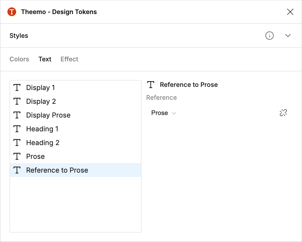 Theemo started out as a way to reference styles, and that functionality still exists. Very important in the early days were colors, but nowadays text and effect styles are still supported, while variables took over for colors (but Theemo still provides transforms).